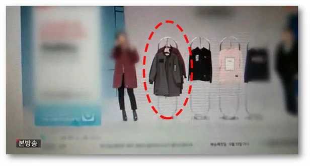 2018년 국내 한 홈쇼핑에서 북한 평양 봉제공장에서 제작한 항공점퍼를 판매하고 있다. 이는 유엔의 대북제재 2375호를 정면으로 위반한 것이다./국민의힘 정진석 의원실 제공