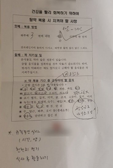 한의원에서 받은 주의사항. 냉장고에 붙여놓고 칼같이 지키신다.