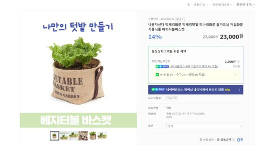 화분 등에 텃밭을 키워 심신 안정을 취한다는 소비자가 늘었다. 네이버 쇼핑 캡처